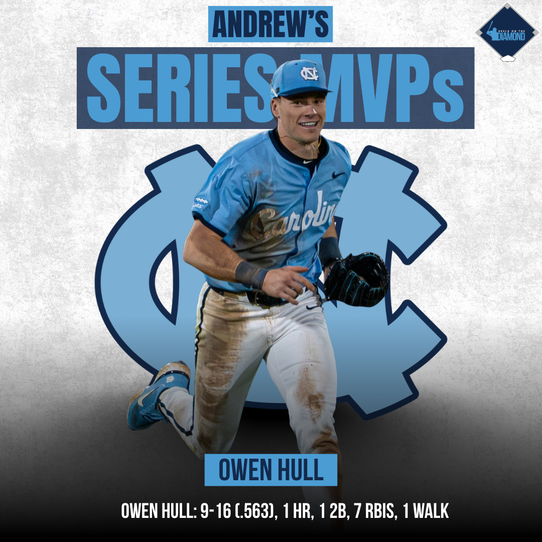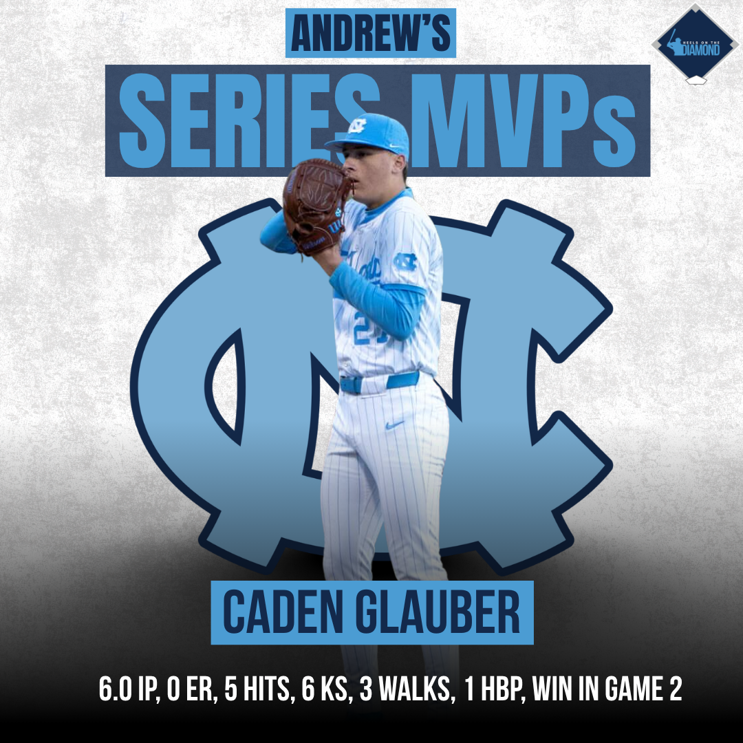 It doesn’t get more high leverage than pitching in extra innings, but Caden Glauber continued to show why Scott Forbes trusts him so much in critical situations. The freshman came into the game in the 9th inning and held Clemson scoreless until UNC’s bats could get going in the 14th. Even when he got himself into some trouble, Glauber never panicked. One of the biggest moments of the game came in the 10th inning when Glauber somehow got out of a bases-loaded jam with just one out and facing a 3-0 count.