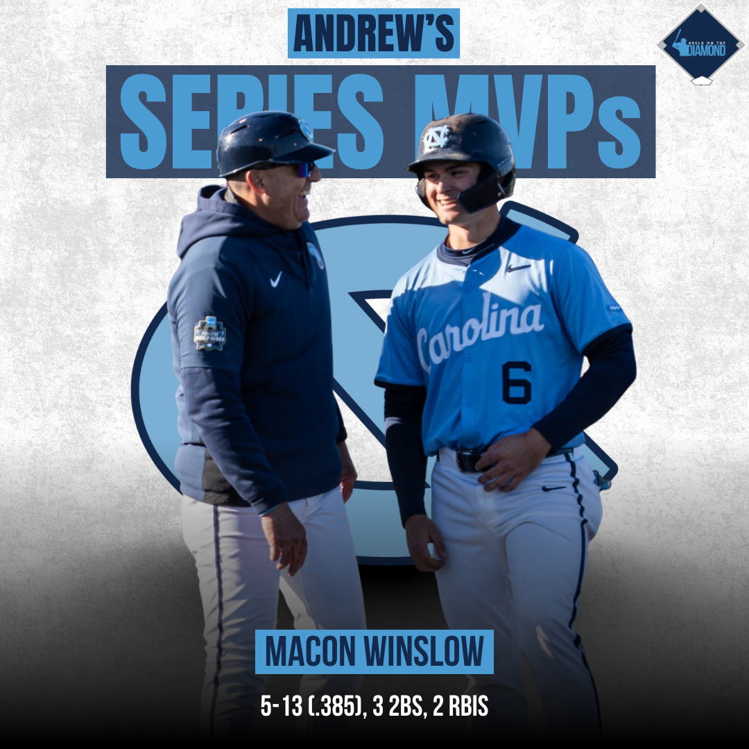 Winslow had a solid weekend at the plate, hitting .385 in the series. However, his most impressive performance came from behind the dish, where he caught all 14 innings of Saturday’s marathon. The catcher had a huge play in the 10th inning, throwing out Jarren Purify, who was trying to steal second. And despite some command issues from UNC pitchers, Winslow never let a pitch get away from him.