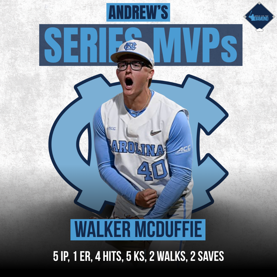 Against Boston College, Walker McDuffie became the first Tar Heel pitcher in four years to pitch at least one inning in all three games of a weekend series. And he was lights out in doing so, coming into numerous high leverage situations and giving up only one run while collecting two saves.