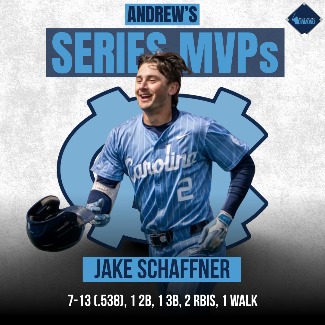 Schaffner continues to be a hard out for opposing pitchers at the top of UNC’s lineup. In a series where runs were somewhat limited, he was one of the few consistent bats in all three games. The shortstop also pitched in some fantastic defense in a weekend where the Heels turned seven double plays.